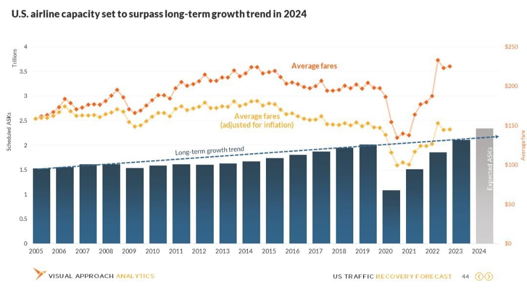 Now that we know just how quickly things can turn on the airlines, it’s tough to remember just how impossible it was to talk of overcapacity in the summer of 2023. It was just one year prior the airlines saw a significant under-capacity, driving record fares and temporarily justifying the massive increases in pilot wages that would follow.