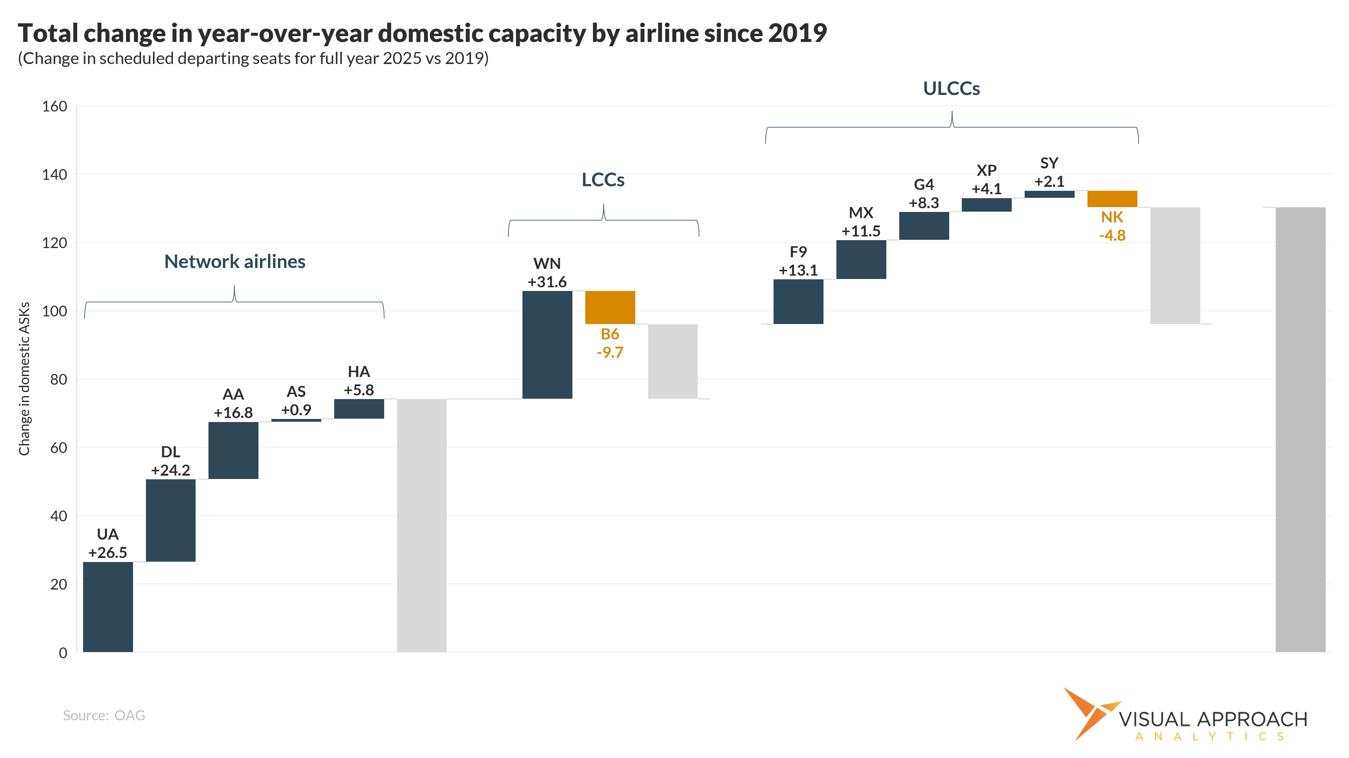 Indeed, when we look at where the growth was as of the start of the year, the primary growth came from the network airlines, and very little from the LCCs or ULCCs. This aligns with the growth in premium and economy seats in the separate analysis.