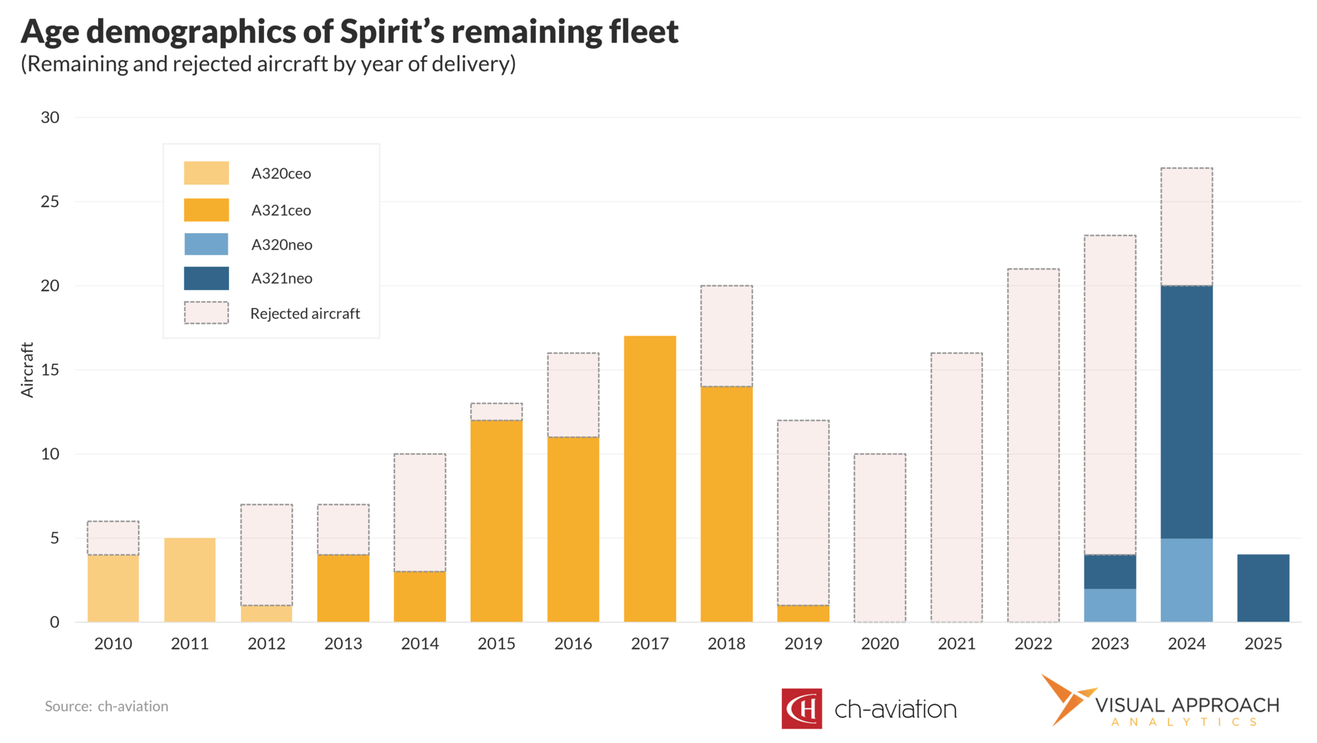 Which leads us back to the fleet itself, and the gap that has emerged between Spirit’s ongoing CEO and NEO fleets. The last CEO arrived at Spirit in early 2019, while the first retained NEO arrived in late 2023. The split is substantial.