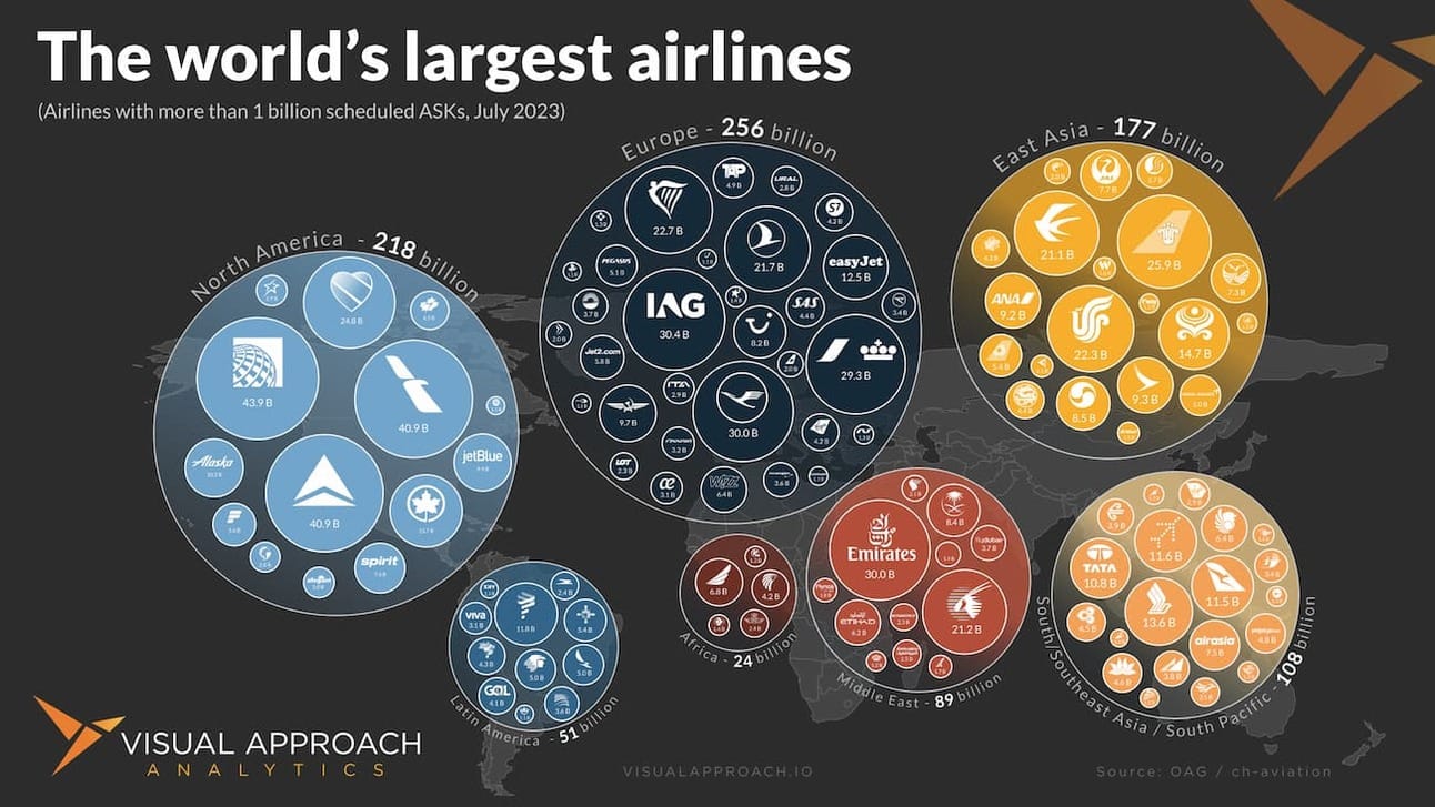 Sometimes we like to zoom out and look at the global view of commercial aviation. For airlines, it’s an interesting view. Europe remains the largest overall region by available seat kilometers but also the most fragmented.