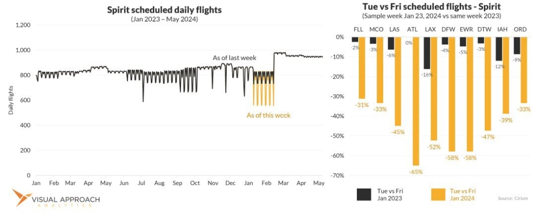Day-of-week seasonality has returned to Spirit with peak day flying up near 2023 levels, but not so much for the days nobody want to fly.